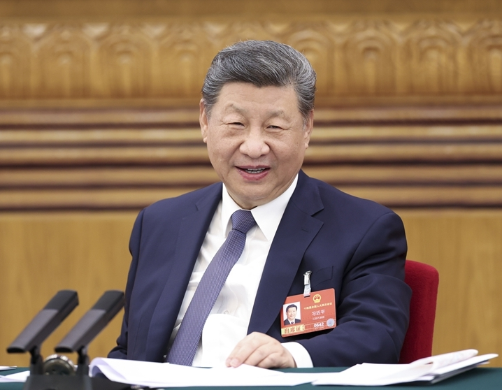 3月5日下午,中共中央总书记、国家主席、中央军委主席习近平参加他所在的十四届全国人大四次会议江苏代表团审议。新华社记者 殷博古 摄