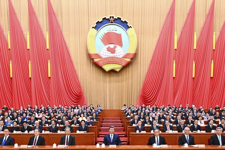 三月的北京,春启华章。人民大会堂大礼堂灯光璀璨,气氛隆重热烈。中国人民政治协商会议会徽悬挂在主席台正中,十面鲜艳的红旗分列两侧。