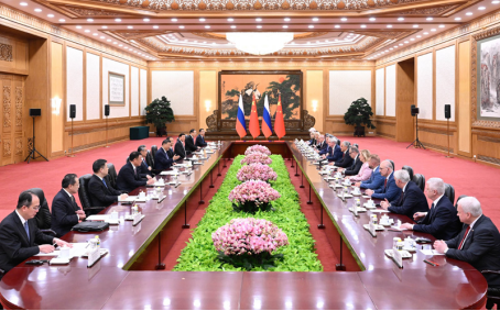 习近平指出,中俄关系是动荡变革的当今世界最稳定、最成熟、最富战略内涵的一组大国关系。持之以恒推动中俄关系高水平发展,符合两国人民根本利益,也是世界和平的稳定源。今年5月,我对俄罗斯进行国事访问并出席纪念苏联伟大卫国战争胜利80周年庆典,下周中方将隆重举行纪念中国人民抗日战争暨世界反法西斯战争胜利80周年活动。中国和苏联分别作为第二次世界大战亚洲和欧洲主战场,为抗击日本军国主义和德国法西斯侵略付出巨大民族牺牲,为赢得二战胜利作出重大贡献。双方要赓续传统友谊,深化战略互信,加强各领域交流合作,携手捍卫两国安全和发展利益,团结全球南方国家,坚持真正的多边主义,推动国际秩序朝着更加公正合理的方向发展。