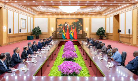 习近平强调,中方始终秉持真实亲诚理念和正确义利观开展对非合作,愿同加方增进政治互信,在涉及双方核心利益和重大关切问题上相互支持。双方要共同落实中非合作论坛北京峰会成果,探索多元化合作模式;拓展矿业、能源、基础设施建设、农渔业等领域合作,帮助加方将资源优势转化为发展动能,实现资源开发和环境保护有效协同,推动两国合作高质量发展;共同践行全球治理倡议,推动构建更加公正合理的全球治理体系。双方就共同发展经济伙伴关系协定早期收获安排达成原则共识,期待加方早日从中国对非洲建交国100%税目产品零关税举措中受益。