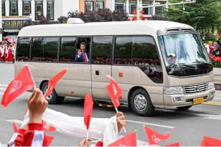 8月21日,中共中央总书记、国家主席、中央军委主席习近平在拉萨出席西藏自治区成立60周年庆祝活动后,乘专机返回北京。这是习近平在前往贡嘎机场途中向前来欢送的各族群众挥手致意。新华社记者 丁磊 摄
