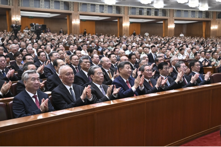 9月3日,纪念中国人民抗日战争暨世界反法西斯战争胜利80周年文艺晚会《正义必胜》在北京人民大会堂隆重举行。习近平、李强、赵乐际、王沪宁、蔡奇、丁薛祥、李希、韩正等党和国家领导人,与约6000名中外人士一起观看晚会。新华社记者 李响 摄