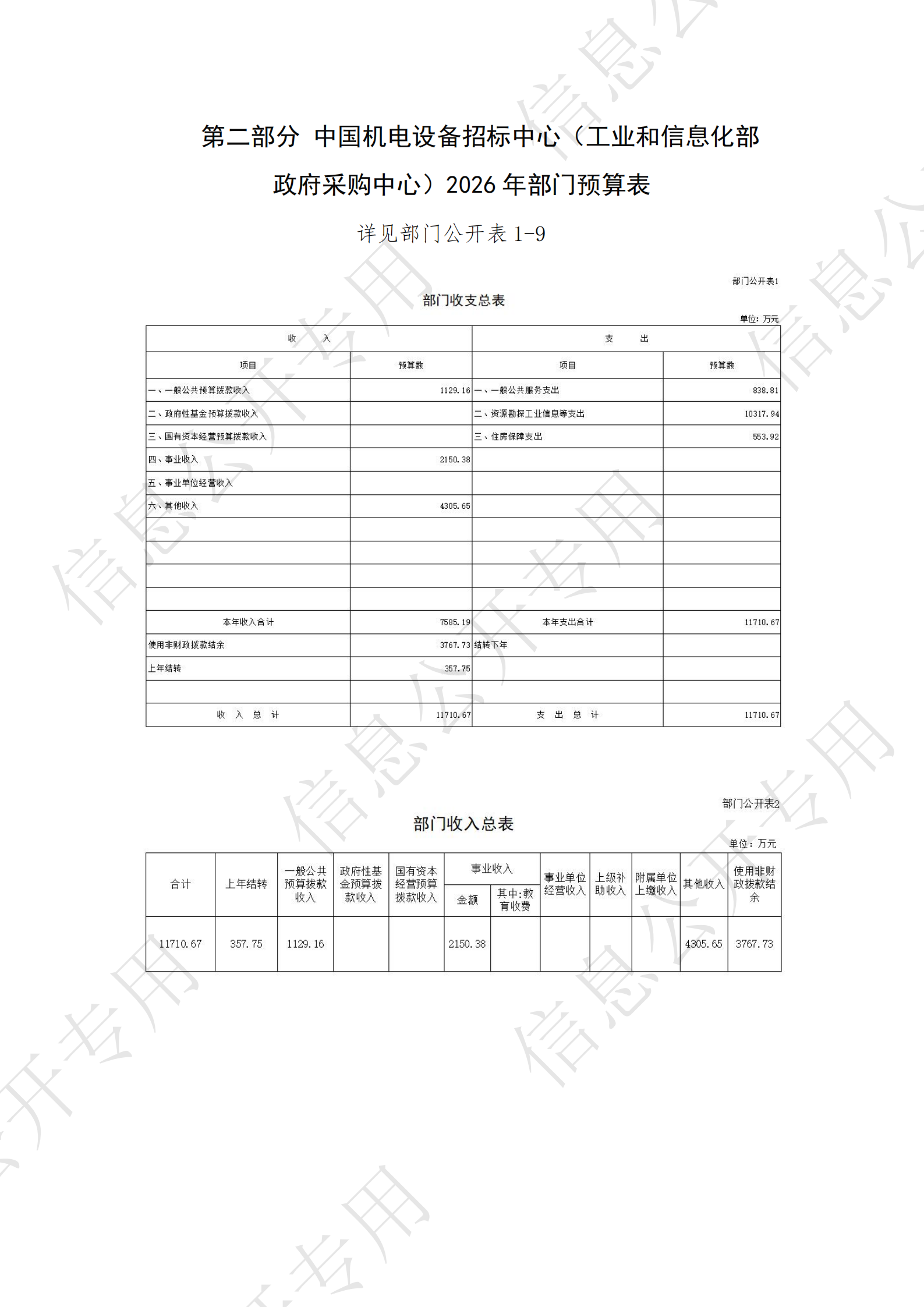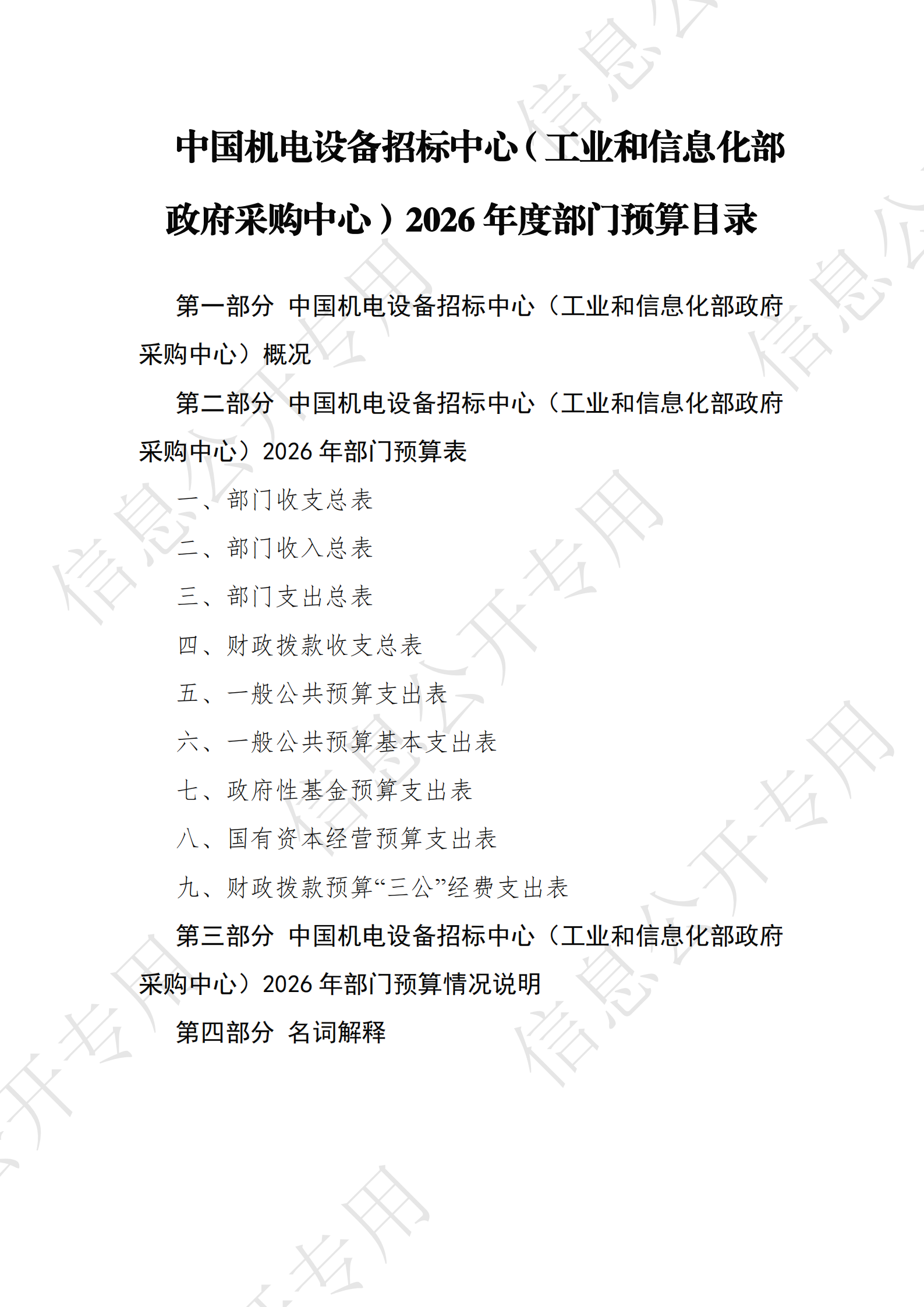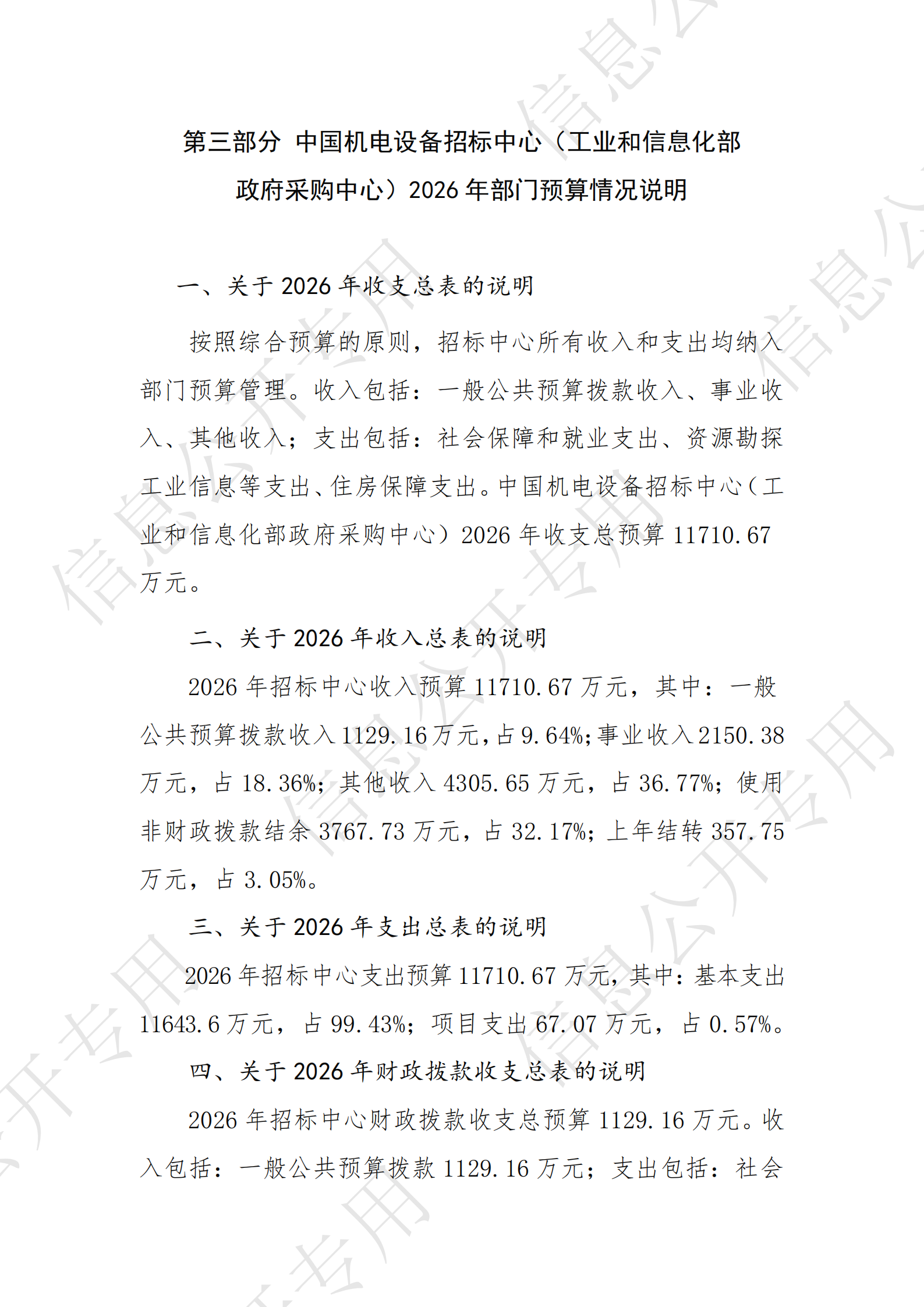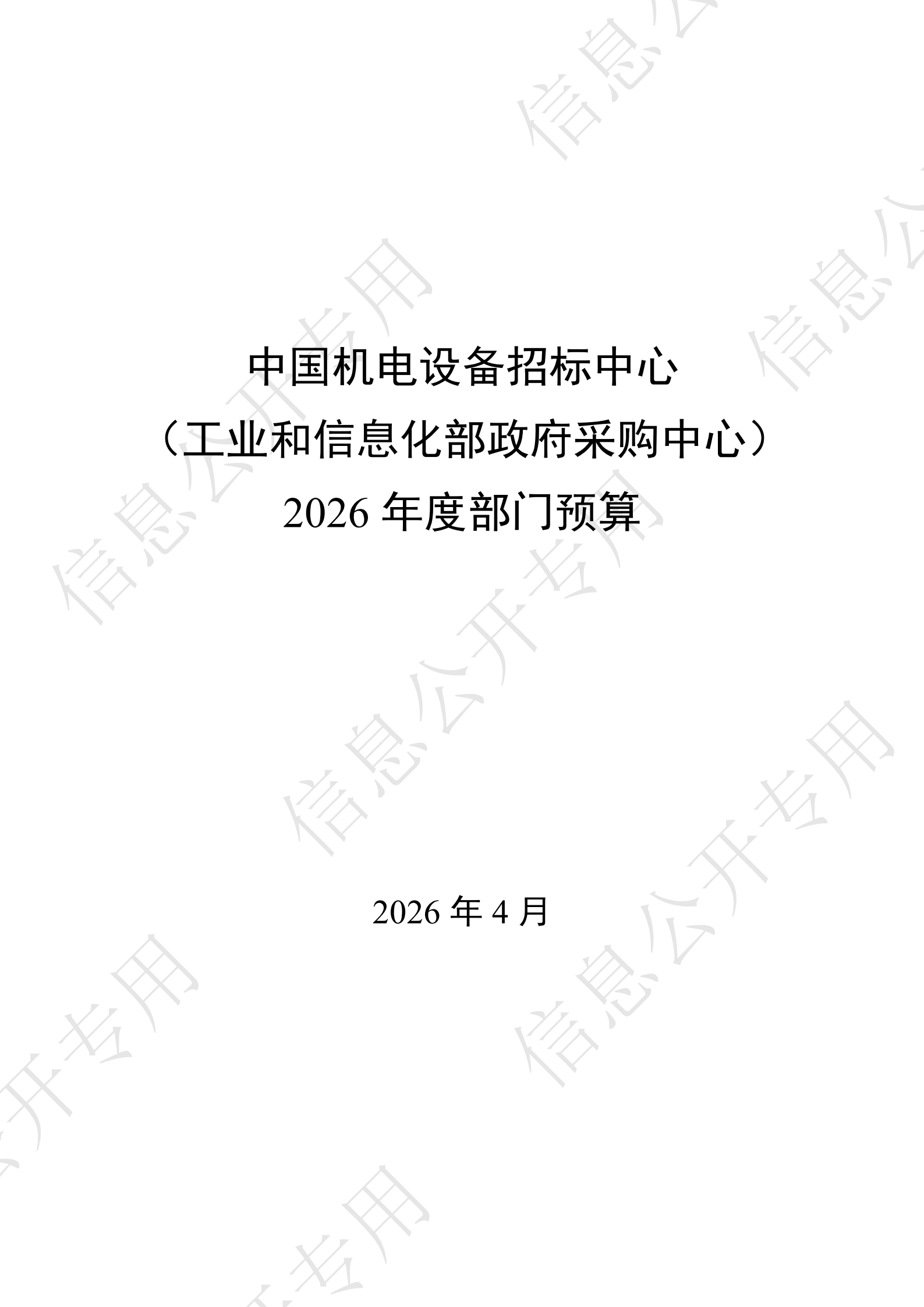 中国机电设备招标中心 (工业和信息化部政府采购中心) 2026年度部门预算