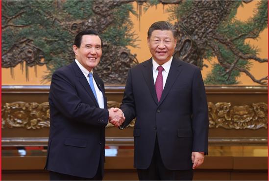 4月10日下午,中共中央总书记习近平在北京会见马英九一行。新华社记者 鞠鹏 摄